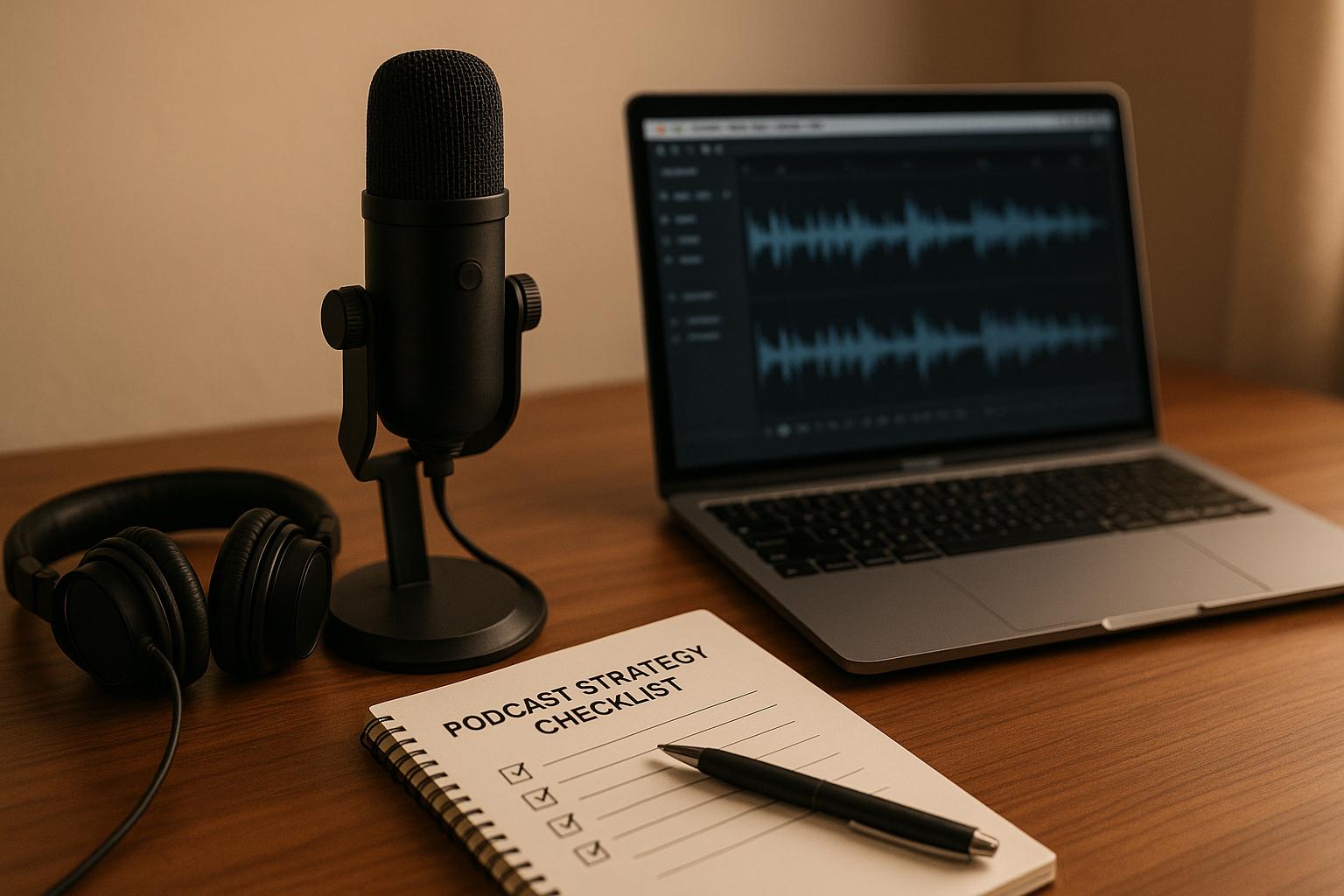 Strategic planning transforms loose ideas into consistent, meaningful content. By aligning episodes with your audience's buyer's journey - whether they’re just identifying a problem or actively comparing solutions - you create value at every stage. A clear format streamlines production, while a content calendar keeps you focused on topics your listeners care about. And let’s not forget: your brand identity is what makes your podcast stand out in a sea of options, ensuring it’s memorable and recognizable.