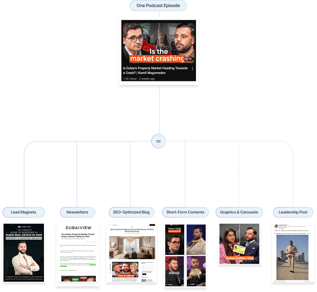 We handle production, editing, and turn each episode into 20+ pieces of shareable content